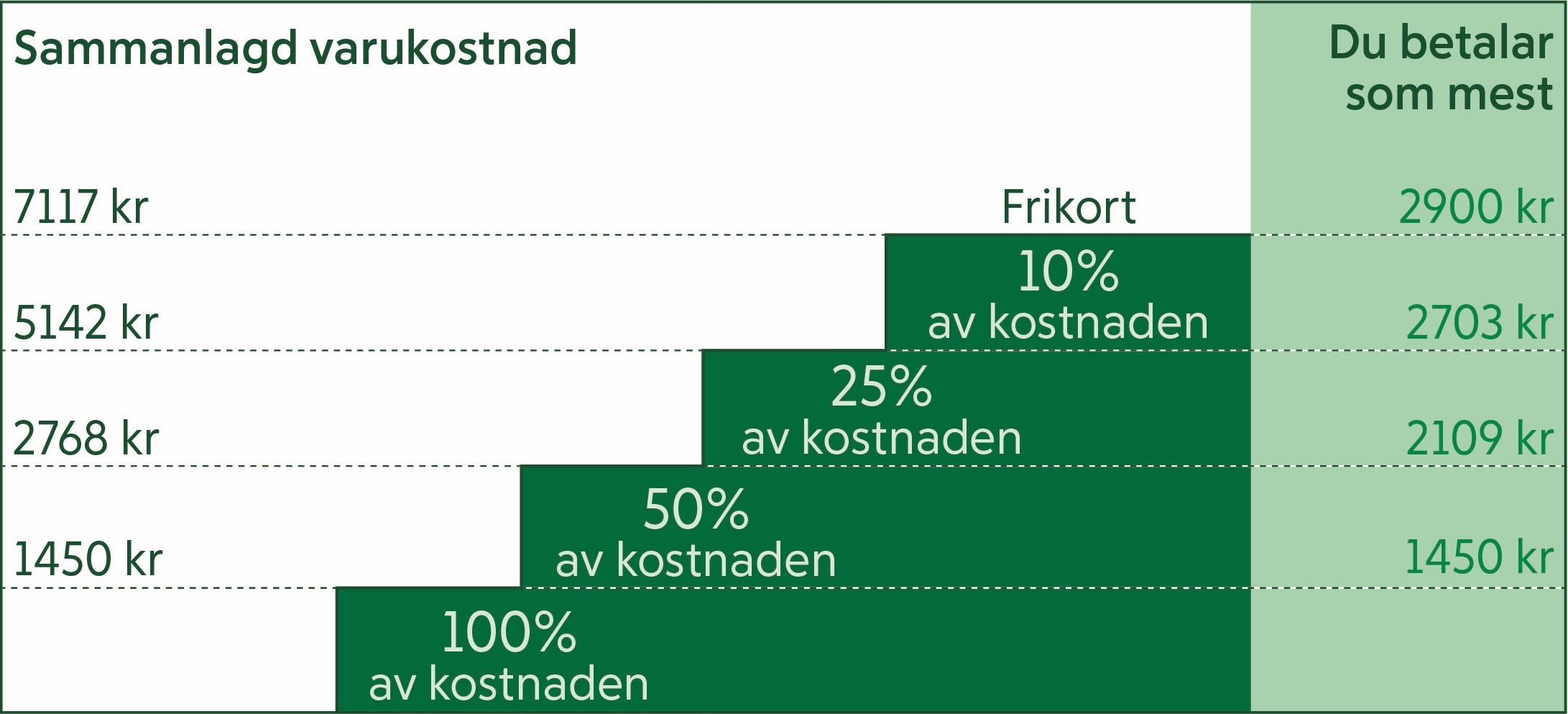 Den stegvisa rabatten på receptbelagda läkemedel ser ut så här: