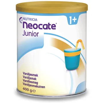 Neocate Junior är en komplett elementardiet baserad på aminosyror. Den är till för barn som har sojaallergi, komjölksallergi eller multipel födoämnesallergi. Den kan aäven användas vid andra tillstånd där man blivit rekommenderad en elementardiet. Neocate Junior kan drickas som kosttillägg eller vara enda föda eller sondnäring. Den kan användas i mat och vid bakning. 400 g. Neocate Junior är ett livsmedel för speciella medicinska ändamål och ska användas i samråd med läkare eller dietist. Neocate Junior är ej för parenteralt bruk. Lämplig som enda näringskälla och kan ges till barn över 1 år. Koka inte färdig tillredning och varken värm eller tillred Neocate Junior i mikrovågsugnen.