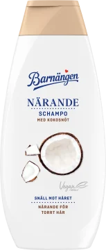 Barnängen Schampo Närande är ett vårdande schampo med kokosnötextrakt. Schampo som är snäll mot håret med vegansk formula som verkar närande för torrt hår. Intensivt vårdande från rot till topp som samtidigt gör håret fräscht och smidigt. Dermatologiskt testad och kan användas dagligen.