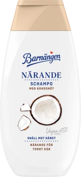 Barnängen Schampo Närande är ett vårdande schampo med kokosnötextrakt. Schampo som är snäll mot håret med vegansk formula som verkar närande för torrt hår. Intensivt vårdande från rot till topp som samtidigt gör håret fräscht och smidigt. Dermatologiskt testad och kan användas dagligen.