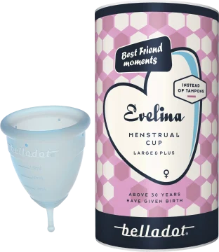 Belladot Evelina menskopp är ett mensskydd som är både miljövänligt och ekonomiskt jämfört med andra eftersom du använder menskoppen om och om igen. Menskopp är ett bra alternativ till tamponger och även lämplig om du har problem med torra och sköra slemhinnor. Evelina Menskopp påverkar inte pH-balansen. Kan tryggt användas när du sover, tränar, simmar eller är på resa. Menskoppen har kapacitet att rymma mer vätska än tamponger, vilket minskar dina toalettbesök och ger en friare känsla. Belladot Evelina är framställd av säker silikon och är mjuk och enkel att använda vid mens. Finns i två storlekar. 1 menskopp per förpackning. Small & Medium passar för lätt till måttlig mängd. Oftast före barn eller om du är under 30 år. Rymmer 25 ml vätska. Large & Plus passar för måttlig till riklig mängd. Oftast efter barn eller om du är över 30 år. Obselvera att storleksvalen innebär 1st menskopp per förpackning. Rymmer 30 ml vätska.