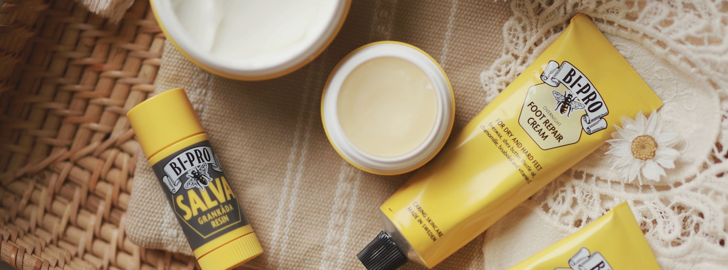 Bi-Pro är ett svenskt hudvårdsmärke som har funnits sedan 1970-talet. De utvecklar hudvårdsprodukter för händer, fötter och hud. Med en passion för bin och naturen är deras produkter baserade på framförallt bivax och grankåda tack vare sina värdefulla egenskaper. Köp hudvård från Bi-Pro online hos Apotek Hjärtat.