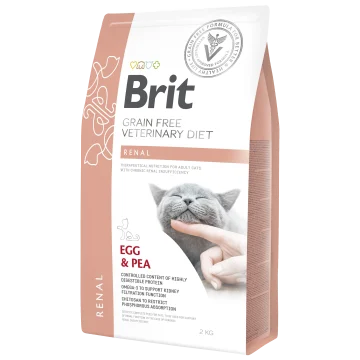 Brit Grain-Free Veterinary Diet Cat Renal är ett komplett dietfoder för katter som stödjer njurfunktionen vid kronisk njurinsufficiens. Fodret stödjer njurfunktionen hos katter som lider av njursproblem som kronisk njurinsufficiens eller njursvikt. Fodret passar även katter som har kardiorenalt syndrom, urat och cystin urolitiasis. Ska ej inte ges till kattungar eller dräktiga och digivande katter. 2 kg.
