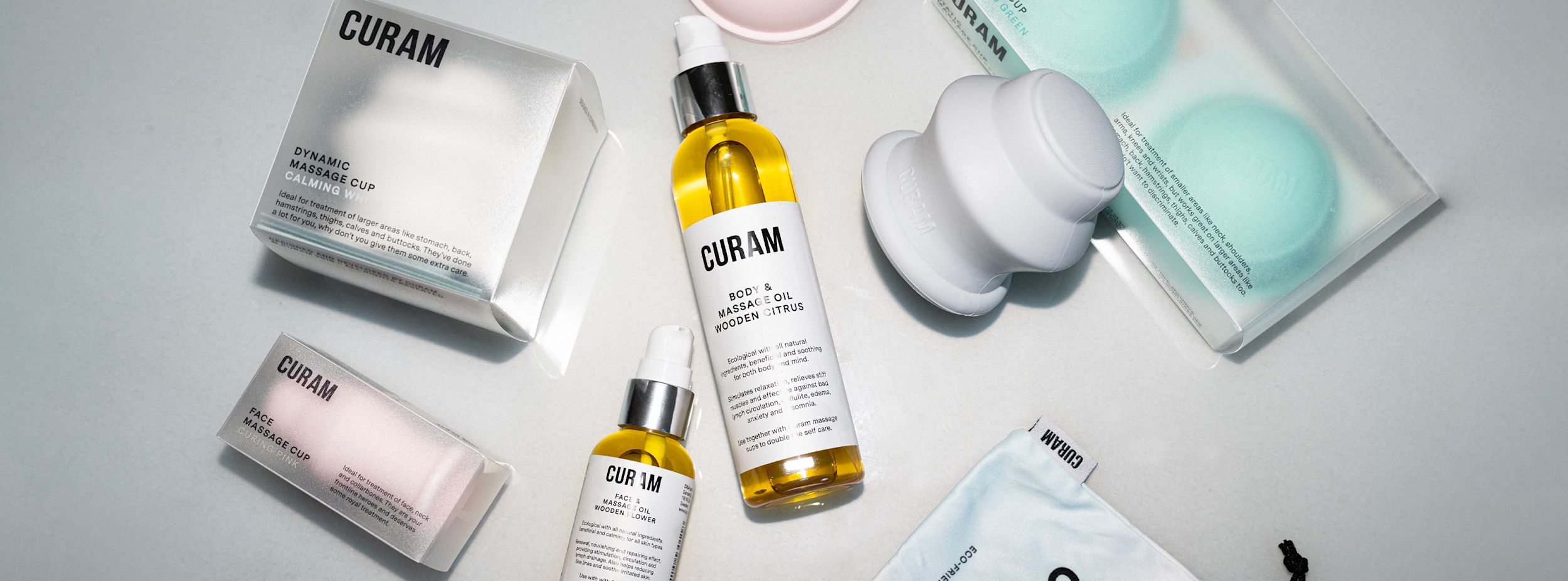 Curam är ett svenskt varumärke inom self-care som utgår ifrån den flera tusen år gamla koppningstraditionen och förflyttar metoden till eget utförande i hemmet, förpackad i skandinavisk minimalism och funktion. Produkterna har skandinavisk design och enkelhet, de är miljövänliga och tillverkade i ett giftfritt material.
