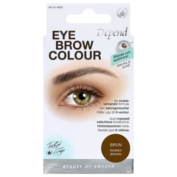 Depend Eyebrow Colour är en permanent ögonbrynsfärg som ger ett intensivt resultat som definierar brynen. Innehåller risprotein och olja utvunnen från ängskrasse som kortar ner behandlingstiden. Ger en skonsam färgningsprocess och ett resultat som håller upp till sex veckor. Välj mellan flera olika nyanser.