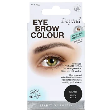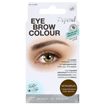Depend Eyebrow Colour är en permanent ögonbrynsfärg som ger ett intensivt resultat som definierar brynen. Innehåller risprotein och olja utvunnen från ängskrasse som kortar ner behandlingstiden. Ger en skonsam färgningsprocess och ett resultat som håller upp till sex veckor. Välj mellan flera olika nyanser.