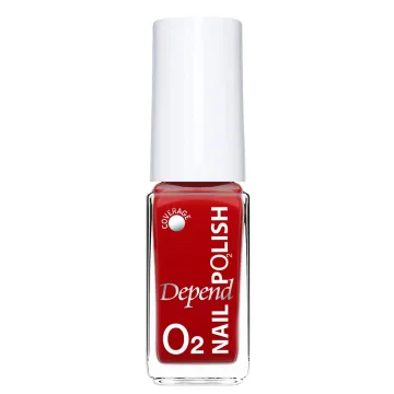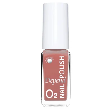 Depend O2 Minilack är ett lättapplicerat nagellack i kompakt format, perfekt när du vill ha många olika nyanser. Specialdesignad pensel som är platt med rundad kant och extra följsam som gör det lätt att applicera. Patenterad formula som släpper igenom 30% mer syre till nageln än ett vanligt nagellack. Flaskan är försedd med symboler som visar lackets täckningsgrad; täckande, halvtäckande eller transparent. Finns i flera olika läckra färgval. 5 ml.