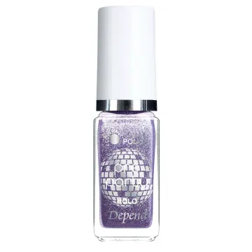 Depend Minilack är ett lättapplicerat nagellack i kompakt format, perfekt när du vill ha många olika nyanser. Specialdesignad pensel som är platt med rundad kant och extra följsam som gör det lätt att applicera. Flaskan är försedd med symboler som visar lackets täckningsgrad; täckande, halvtäckande eller transparent. Detta är nagellack i kollektionen Pre Party, med chrome och holografisk effekt. 5 ml.