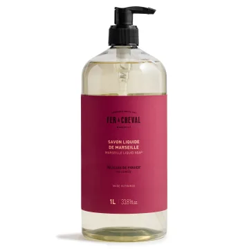 Fer à Cheval Flytande Tvål Fig Leaves är en handtvål som är tillverkad enligt den traditionella metoden för flytande Marseilletvål. Tvålen innehåller 97% naturliga ingredienser och baseras på kokosolja som rengör huden skonsamt och effektivt. Formulan är även berikad med arganolja och naturligt glycerin som mjukgör och vårdar huden. Tvålen ger ett mjukt lödder som skonsamt rengör huden, och kan användas varje dag på både händerna och resten av kroppen. Passar normal hud. Vegansk. Doften Fig Leaves är framtagen tillsammans med en parfymmästare i Marseille, och är en fräsch och fruktig doft med en blommig elegans och en mjuk, träig bas som ger värme och djup. Toppnoter: Fikonblad, Galbanum Hjärtnoter: Fikon, Viol, Jasmin, Hagtorn Basnoter: Ljust trä, Mysk, Cederträ