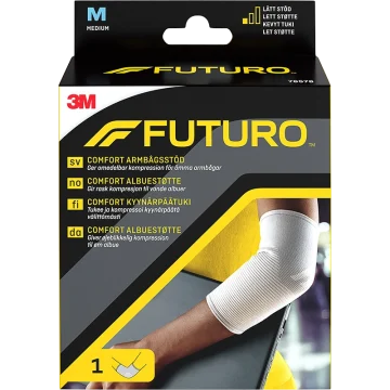 Futuro Comfort Armbåge är ett armbågsstöd. Det är tillverkat i ett mjukt och luftigt material som släpper genom fukt. Stödet har inga skenor, utan ger stöd genom kompression och värme. Stödet finns i olika storlekar. Det passar på både höger eller vänster arm. Small: 23,0-25,5 cm Medium: 25,5-28,0 cm Large: 28,0-30,5 cm