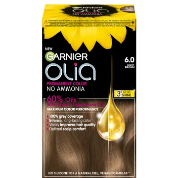 Garnier Olia Permanent Hårfärg är en permanent hårfärg utan ammoniak berikad med 60% oljor för att ge maximal färgprestation och förbättra hårets kvalitet. Ger upp till 100% täckning mot grå hårstrån samtidigt som den är skonsam mot hårbotten. Formulan hjälper till att skapa ett starkt och skinande hår utan att skada håret. 1 pack.