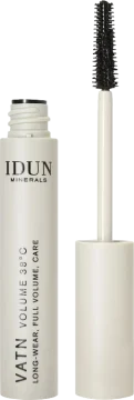 IDUN Minerals Mascara Vatn Volume 38°C definierar, separerar samt ger fransarna volym som enkelt går att bygga upp. Vattenfast mascara med vegansk formula som ger ett långvarigt resultat och enkelt tvättas bort med endast ljummet vatten som är över 38°C. Berikad med sheasmör och ricinolja som vårdar och ger näring till ögonfransarna. Mjuk gummiborste som separerar fransarna samtidigt som den ger en jämn och exakt applicering. 9 ml.