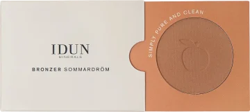 IDUN Minerals Matte Mineral Bronzer Sommardröm är ett matt solpuder som ger en jämn och naturlig nyans med solkysst ton. Berikad med mineraler och en rikt pigmenterad formula. Kan även användas för contouring med lätta svep för perfekt effekt. Passar alla hudtyper, även känslig hud. Oparfymerad och vegansk. Dermatologiskt testad. 4,6 g.