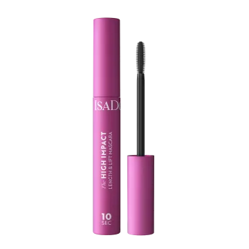 IsaDora 10 Sec High Impact Length & Lift Mascara förlänger och lyfter dina fransar tack vare en innovativ borste och en krämig formula. Den krämiga texturen är lätt att bygga upp och glider lätt på fransarna utan att smula. Borsten är unikt formad för att sträcka ut varje frans från rot till topp och når även de minsta fransarna. 9 ml.