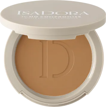 IsaDora The No Compromise Matte Longwear Powder är ett vattenfast pressat puder som ger medium till full täckning. Pudret har en återfuktande soft-focus effekt som kontrollerar glansiga partier i ansiktet. Den krämiga konsistensen känns mjuk och behaglig på huden. 7 g.