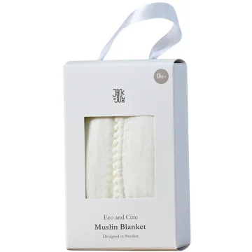Jack o Juno Pom Pom Muslinfilt är en mjuk och andningsbar babyfilt. Filten är tillverkad av en blandning av bambu och ekologisk bomull som är skonsam mot känslig hud. Materialet är lätt men slitstarkt. Passar för daglig användning och är mångsidig att användas för flera tillfällen som i vagnen eller vid amning. 1-pack.