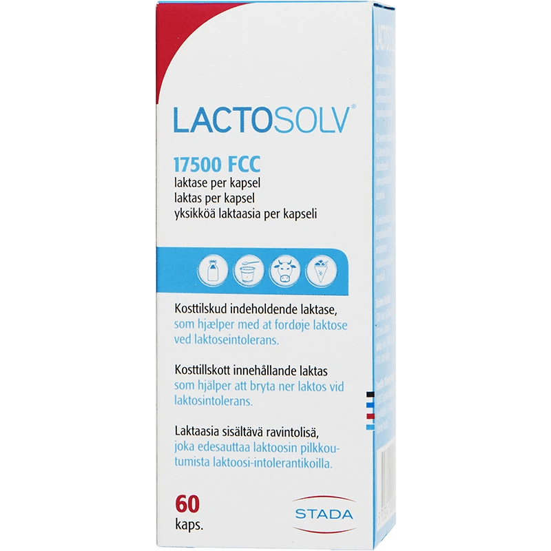Lactosolv är ett kosttillskott med laktasenzym som bryter ner laktos. Lactosolv ® är framtagen för att bryta ner laktos och innehåller 17500 FCC-enheter laktasenzym per kapsel. 60 kapslar.