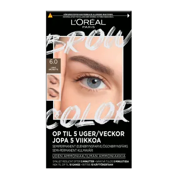 L'Oréal Paris Brow Color Kit är en semipermanent ögonbrynsfärg som håller i upp till fem veckor. Färgen gör att ögonbrynen ser fylligare ut utan att du behöver fylla i dem varje dag. I förpackningen ingår färgkräm, framkallningskomponent, blandningskopp och applikator så att du har allt du behöver för att enkelt färga ögonbrynen hemma. Färgen innehåller ingen ammoniak, ger synligt resultat efter fem minuter och bleknar naturligt över tid. Räcker till 10 användningar.
