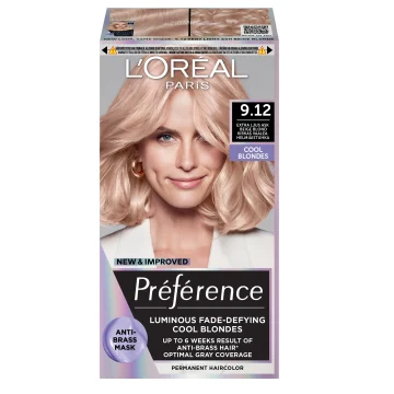 L'Oréal Paris Préférence Le Blonding Permanent Hårfärg För Normalt Hår är en hårfärg som ger ett lent, glansfullt hår och täcker grått hår upp till 100%. Formulan håller färgen strålande i upp till 8 veckor och är lätt att applicera, kan sköljas ur efter bara 25 minuter. Förpackningen innehåller färggel, framkallningskräm, efterbehandling, skyddshandskar och bruksanvisning. 1 pack.
