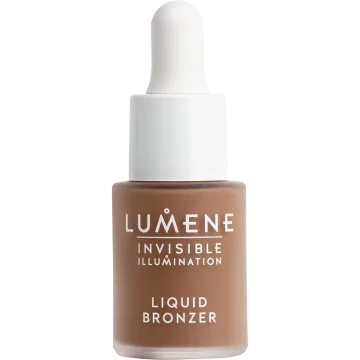 Lumene Invisible Illumination Liquid Bronzer är en flytande bronzer som ger huden en solkysst look. Lätt formula som återfuktar och innehåller återfuktande nordiska alger, lystergivande nordisk mjölkört och lugnande E-vitamin. Hjälper till att ge huden en mer strålande hud. Kan appliceras i flera lager för en mer intensiv nyans. 15 ml.