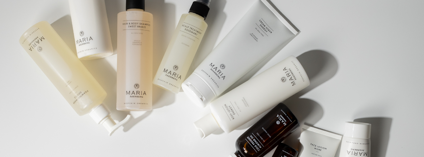MARIA ÅKERBERG grundades 1995 och är idag Sveriges främsta varumärke inom naturlig och professionell hudvård. Varumärkets vision är att fånga den naturliga skönheten med rena produkter som vårdar på djupet och ger långvarigt resultat. Deras hudvårdsfilosofi kallas Deepskin Organics® och genomsyrar allt deras arbete och hela sortimentet. MARIA ÅKERBERGs breda sortiment består av produkter inom hudvård, hårvård och makeup som är gjorda på naturliga mineraler och ingredienser från växtriket. Hos oss på Apotek Hjärtat hittar du bland annat hudvårdsprodukter som body lotion, ansiktskrämer, ansiktsrengöring och ögonprodukter. Inom hårvård hittar du produkter som schampo, balsam, hårinpackningar och hårmasker.