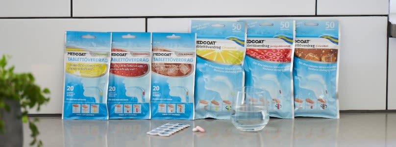 Drageringen gör tabletter hala i munnen och ökar salivproduktionen, vilket kan underlätta sväljningen. Den maskerar även tabletternas smak. När tabletten sväljs, löser drageringen sig snabbt. Medcoat finns i flera olika smaker och förpackningsstorlekar och passar för både barn och vuxna.