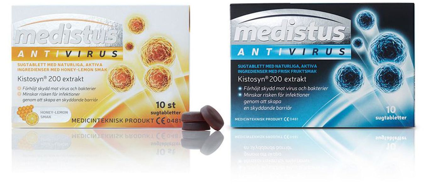 Medistus Antivirus är sugtabletter som ger ett förstärkt skydd mot virus och bakterier i upp till två timmar. Tabletterna skapar en skyddande barriär i munnen och svalget och minskar risken för att drabbas av infektioner. Passar perfekt att använda i kollektivtrafik, på flygresor, vid evenemang, på fester och andra liknande tillfällen.