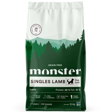 Monster Dog Grain Free Singles Lamb är ett spannmålsfritt torrfoder för hund. Innehåller lamm som första ingrediens och enda proteinkälla. Skonsamt recept med utvalda ingredienser och god smak. Passar från 1 år och uppåt.