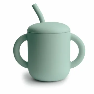 Mushie Silicone Training Cup + Straw är en sugrörsmugg som passar perfekt att erbjuda dryck i vid övergången mellan nappflaska och mugg. Muggen har två handtag som är lätta för små händer att greppa och hålla i, ett avtagbart lock och ett mjukt sugrör som är skonsamt för barnets tandkött och första tänder. Muggen är tillverkad av 100% livsmedelsklassad silikon som kan diskas i diskmaskin och värmas i mikrovågsugn. Elegant design som passar in i alla moderna hem. Passar från 6 månaders ålder. Rymmer 175 ml vätska.