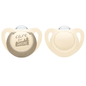 NUK for Nature Napp Silikon Creme är en napp med mjuk sugdel av silikon och sköld i hållbart producerad plast. Dinappen har den ursprungliga NUK-formen som är rund upptill och platt undertill, vilket gör att nappen trycker sig mot gommen och lämnar utrymme för tungan. Ingår i NUK for Natures produktserie som är framtagen med naturen som förebild. 2-pack.