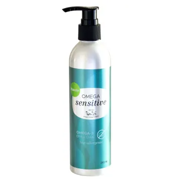 Nutrolin Omega Sensitive är ett fodertillskott för katter och hundar, speciellt framtaget för att bidra till normal hud och päls. Fodertillskottet har ett högt innehåll av omega-3-fettsyrorna EPA och DHA, som är särskilt viktigt för valpar, kattungar och äldre husdjur. Omega-3-fettsyrorna är utvunna ur mikroalger som är en ren och effektiv källa till omega-3. Oljan har en mild smal och bidrar till att bibehålla en frisk hud och glansig päls. 150 ml.