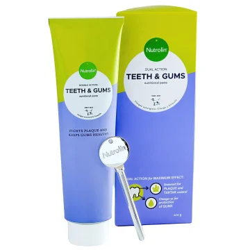 Nutrolin Teeth & Gums Paste är ett fodertillskott som bidrar till tandköttets och tändernas välmående hos hundar och katter. Fodertillskottet innehåller omega-3-fettsyror som bidrar till ett välmående tandkött, och havsalger som skyddar tänderna mot plackbildning och tandsten. Pastan har en smidig konsistens som är lätt att dosera och passar både hundar och katter. 200 g.