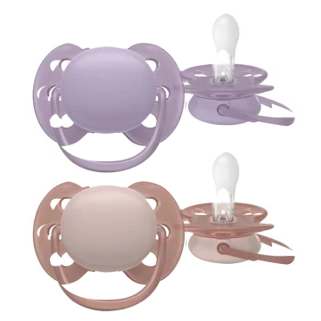 Philips Avent Ultra Soft Napp 6-18 mån är en napp med mjuk sköldteknik som gör att den följer barnets ansiktskonturer. Nappens skonsamma design har utvecklats med bebisars känsliga hud i åtanke. Ultra Soft-nappens sugdel är gjord av mjuk silikon av medicinsk kvalitet som hjälper till att lugna och trösta barnet. Nappen är symmetrisk och följer den naturliga formen på barnets gom, tänder och tandkött. Medföljande fodral (Ultra Soft-resefodral) fungerar även som en sterilisator för att sterilisera nappen i mikrovågsugnen. 2-pack.