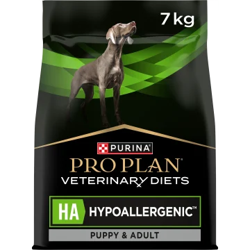 PURINA PRO PLAN Veterinary Diets HA Hypoallergenic Torrfoder Hund är ett komplett torrfoder till valpar och vuxna hundar. Torrfodret bidrar till att minska ingrediens- och näringsintoleranser hos hundar i alla åldrar. Fodret innehåller hydrolyserat protein och utvalda kolhydratkällor. Innehåller Omega 3-fettsyror. Detta foder ska alltid ges under tillsyn av veterinär.