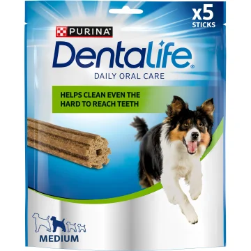 PURINA Dentalife Hundtugg är en innovativ tuggpinne som bidrar till optimal munhälsa. Tuggpinnen rengör även de mest svåråtkomliga bakre tänderna som är mest känsliga för uppbyggnad av plack och tandsten. Pinnarna har tuggmotstånd och en porös sammansättning. Innehåller bland annat D-vitamin och kalcium. Kalcium behövs för att bibehålla normala tänder. För daglig användning. För medelstora hundar 12-25 kg.