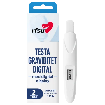 RFSU Digitalt Graviditetstest är ett lättanvänt digitalt graviditetstest som visar ett resultat inom tre minuter. Det har en bred spets som gör det lättare att kissa direkt på testet. Den digitala skärmen visar ett tydligt svar med texten “Yes” eller “No”. Du kan göra testet från och med den dag som du väntar din mens. Testets känslighet är 25 mlU/ml av hormonet hCG i urinen. Testet är över 99% tillförlitligt från och med dagen du väntar din mens. Du kan testa när som helst under dygnet men säkrast är att mäta morgonurinen, då hCG-koncentrationen är som högst.