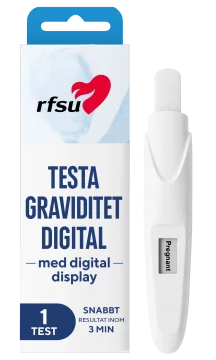 RFSU Digitalt Graviditetstest är ett lättanvänt digitalt graviditetstest som visar ett resultat inom tre minuter. Det har en bred spets som gör det lättare att kissa direkt på testet. Den digitala skärmen visar ett tydligt svar med texten “Yes” eller “No”. Du kan göra testet från och med den dag som du väntar din mens. Testets känslighet är 25 mlU/ml av hormonet hCG i urinen. Testet är över 99% tillförlitligt från och med dagen du väntar din mens. Du kan testa när som helst under dygnet men säkrast är att mäta morgonurinen, då hCG-koncentrationen är som högst.