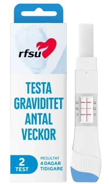 RFSU Weeks Graviditetstest Veckoindikator är ett graviditetstest med veckoindikator som visar hur många veckor du varit gravid. Du kan göra testet redan 4 dagar innan väntad mens. Testets känslighet är 25 mlU/ml av hormonet hCG i urinen. Du kan testa när som helst under dygnet men säkrast är att mäta morgonurinen, då hCG-koncentrationen är som högst. Testet är enkelt att använda och har en bred spets som gör det lättare att kissa direkt på testet. Svaret kommer inom 1-5 minuter med tydliga linjer som är lätta att läsa av. Testet har fyra olika linjer för att visa gravidveckor. 1-2 veckor 2-3 veckor 3-4 veckor 4+ veckor