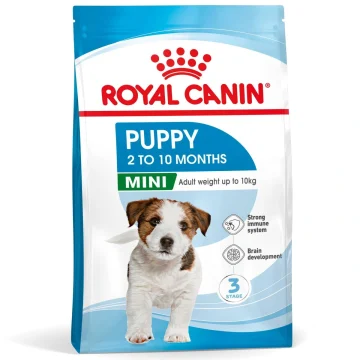 Royal Canin Mini Puppy är ett hundfoder utvecklat för att täcka näringsbehovet hos valpar av mindre raser. Lämpligt för valpar med förväntad vuxenvikt på 4-10 kg, när de är mellan 2 och 10 månader. Det skräddarsydda valpfodret innehåller ett optimalt energiinnehåll anpassat för att tillgodose energibehovet hos snabbt växande valpar av mindre hundraser. Det innehåller även omega-3 fettsyror som kan stödja hjärnans utveckling hos unga valpar och vitamin C och E som stärker utvecklingen av immunförsvaret. Prebiotika och lättsmälta proteiner bidrar till en balanserad tarmflora och god matsmältning. Foderbitarna är speciellt utformade för din valps lilla käke vilket gör det lätt för valpen att plocka upp bitar och tugga.
