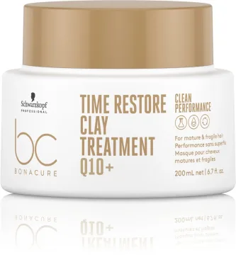 Schwarzkopf Professional BC Time Restore Clay Treatment är en intensivt vårdande hårinpackning för svagt, livlöst, torrt och skört hår. Berikad med bland annat Q10 och antioxidanter som bidrar till att stärka håret och skydda det från yttre påfrestningar. Inpackningen återfuktar håret i upp till 48 timmar efter användning och bidrar till ett starkare och friskare hår med ökad elasticitet.