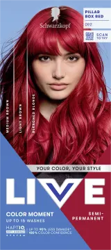 Schwarzkopf LIVE Color Moment är en semipermanent hårfärg med glans och intensitet för uttrycksfulla stilar. Hårfärg med intensiv färgkraft från inbyggda elektrifierande pigment eller välj en mjukare pastellton genom att blanda färgkrämen med det medföljande balsamet. Formula utan ammoniak som bygger på molekylär hårvetenskap med HaptIQ-system som hjälper till att stärka håret genom att skapa nya mikrobindningar och omsluta varje hårstrå med ett skyddande lager. Färgen håller i upp till 15 tvättar.