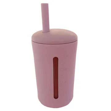 Summerville Organic Mugg med sugrör Silikon är en praktisk silikonmugg för barn. Muggen har både indikator och sugrör och är tillverkad i mjuk och hållbar silikon. Det smarta sugröret gör att det är enkelt för barnet att dricka utan att spilla. Sugröret har ett stopp som gör att det inte kan dras ur när locket sitter på. Den transparenta indikatorn gör det enkelt att se hur mycket dryck som är kvar, vilket gör det enklare att hålla koll på vätskeintaget. Muggen är lätt att rengöra och kan maskindiskas. Den kan användas till både varma och kalla drycker. 200ml. Storlek: 5x7 cm