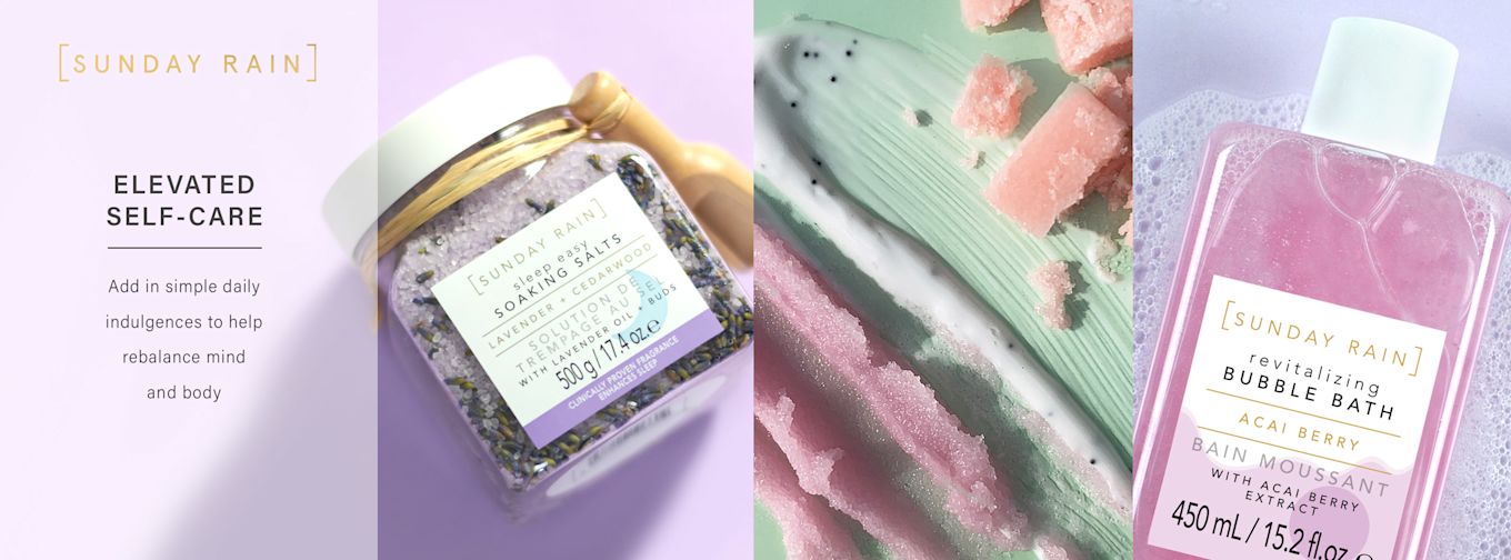 Sunday Rain erbjuder produkter som förvandlar ditt badrum till ett hemmaspa för avkoppling och återhämtning. Sortimentet består av produkter med härliga formuleringar och upplyftande dofter som hjälper dig att lugna sinnet, vårda kroppen och njuta av egen-tid. Alla produkter är 100% veganska och innehåller 90% naturliga ingredienser, och 80% av förpackningarna är tillverkade av återvinningsbart eller återanvändbart material.
