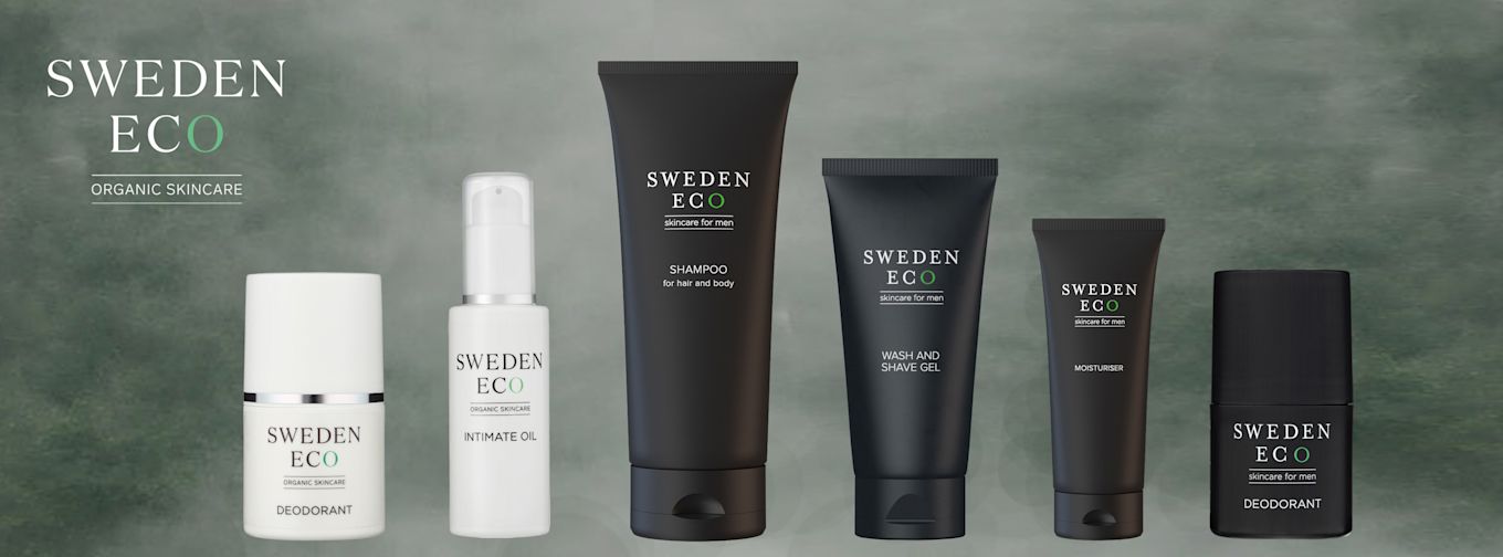 Sweden Eco - Skincare for men är naturlig hudvård för män. Hudvårdsprodukter för den medvetne mannen som vill ha bra resultat på sin hud och samtidigt värna om sin hälsa och vår miljö. 100% naturliga produkter som till största delen är tillverkade av ekologiskt certifierade råvaror som är utvalda med omsorg och där hela tillverkningen sker i Sverige. Sweden Eco erbjuder ett sortiment för alla steg i den manliga hudvårdsrutinen med schampo och duschgel, deo, raktvål, rakborste, skäggolja, toner samt ansiktskräm. Basen i produkterna består av bland annat aloe vera och grönt te med en fräsch doftsättning av sandelträ och kryddnejlika. De vårdande produkterna effektiva, skonsamma och dryga och passar alla hudtyper.