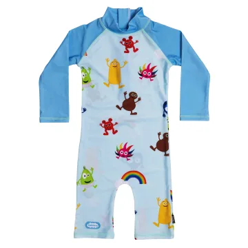 Swimpy UV-dräkt Babblarna Blå är en skyddande UV-dräkt för barn i ett elastiskt skönt tyg med mönster av Babblarna. Lämplig att använda i både sol och vatten och har ett certifierat UV-skydd motsvarande UPF50+. Skyddar barnets ömtåliga hud mot solens strålar och torkar snabbt efter badet. Det är tygets täthet och struktur som ger skyddet, och UV-skyddet håller så länge plagget är helt.