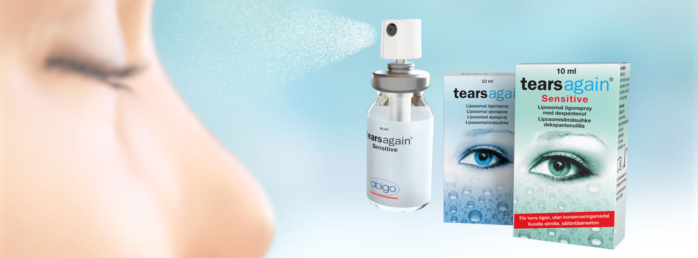 Tearsagain är en ögonspray med lipider som motverkar torra ögon. Lipider är fetter som finns naturligt i ögats tårar och deras funktion är bland annat att bibehålla ögats fukt. Hos de flesta som besväras av torra ögon är denna naturliga funktion obalanserad.