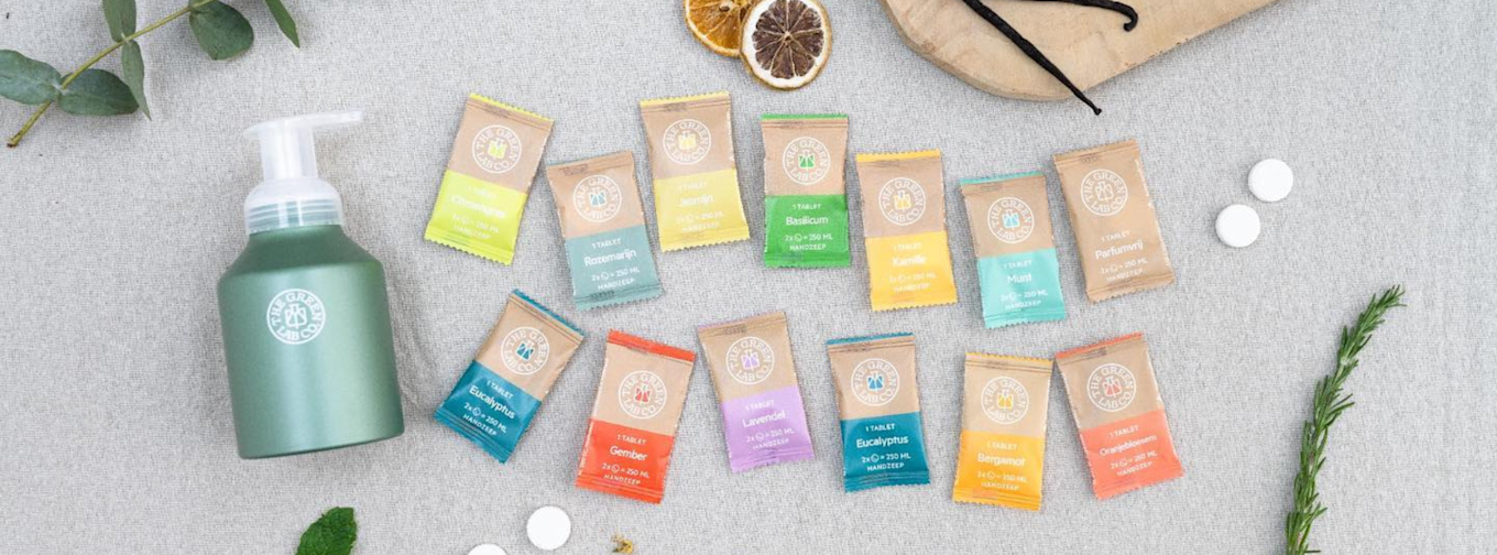The Green Lab Company erbjuder hygienprodukter som till exempel en löddrande och väldoftande handtvål i tablettform som blandas med vatten hemma i en återanvändbar flaska. The Green Lab Company har som mål att minska plastanvändning och minska transporten av vatten.