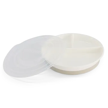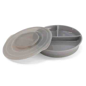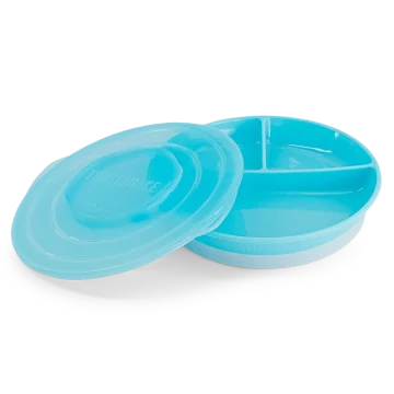 Twistshake Indelad Tallrik 6+m är en barntallrik med tre olika fack. Den har ett medföljande lock vilket gör att den enkelt kan användas som matlåda. Man kan stapla flera stycken då de klickar i varandra. Tallriken glider inte runt på bordet så lätt tack vare undersidans material. Twistshakes 3 delad tallrik självklart helt fri från BPA. Tallriken är skapad av hård och 100% giftfri PP- och TPE-plast. 210 ml + 90 ml + 90 ml.