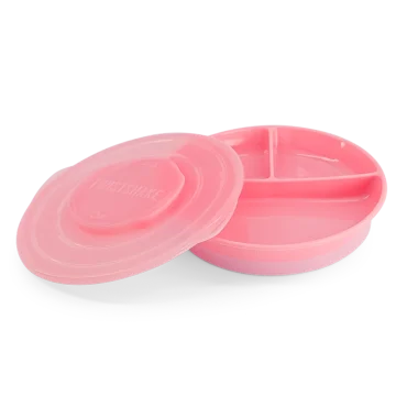 Twistshake Indelad Tallrik 6+m är en barntallrik med tre olika fack. Den har ett medföljande lock vilket gör att den enkelt kan användas som matlåda. Man kan stapla flera stycken då de klickar i varandra. Tallriken glider inte runt på bordet så lätt tack vare undersidans material. Twistshakes 3 delad tallrik självklart helt fri från BPA. Tallriken är skapad av hård och 100% giftfri PP- och TPE-plast. 210 ml + 90 ml + 90 ml.